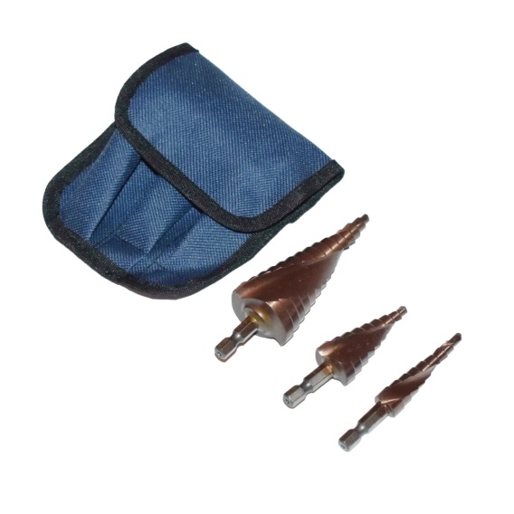 • Zestaw 3 wierteł stopniowych (choinkowych)