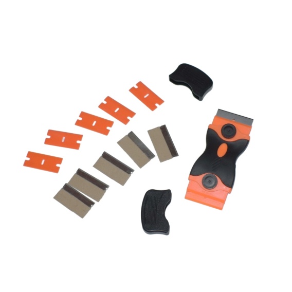 Skrobak do szyb, okien i luster 115 mm to praktyczne narzędzie przeznaczone do usuwania zanieczyszczeń, farby, kleju, naklejek czy pozostałości po taśmach klejących z gładkich powierzchni. Dzięki wymiennym ostrzom można go dopasować do różnych zastosowań - w zestawie znajduje się 5 ostrzy metalowych oraz 5 plastikowych.