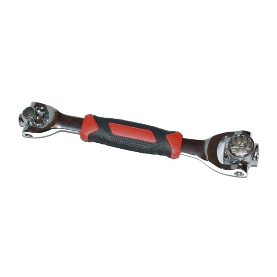 Wielofunkcyjny klucz obrotowy 8-19 mm to nowoczesne, uniwersalne narzędzie, które z powodzeniem zastąpi wiele klasycznych kluczy płaskich i nasadowych. Wyposażony w dwie obrotowe głowice 360°, z czterema otworami każda, umożliwia błyskawiczną zmianę rozmiaru roboczego bez konieczności sięgania po inne narzędzia. Klucz automatycznie dopasowuje się do śrub i nakrętek o rozmiarach od 8 do 19 mm, dzięki czemu idealnie sprawdza się w warsztacie, serwisie samochodowym, garażu oraz podczas prac domowych.