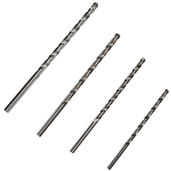 Zestaw 4 bardzo długich wierteł HSS (DIN 1869) - 3, 4, 5, 6 mm.
